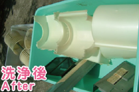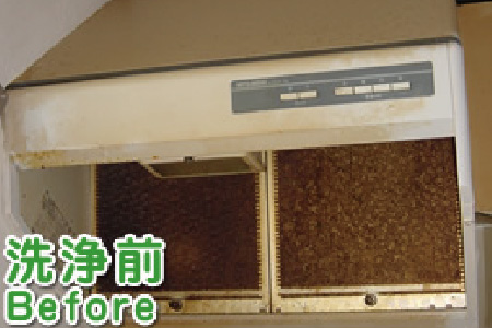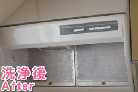 油汚れが付いたレンジフード換気扇やガスコンロも専用の洗剤と技術でご覧の通り徹底洗浄!もちろん、換気扇の内部も徹底洗浄いたします。