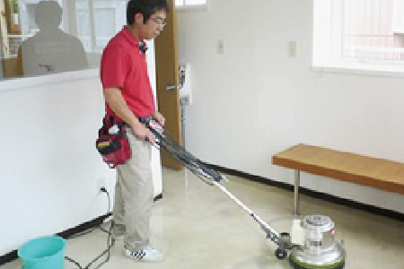 店舗、事務所、ご家庭の床フロアー美観維持には定期的なワックスがけをおすすめいたします。こびり付いた汚れは専用ポリッシャーにて強力洗浄いたします。美観維持はこのワックス前の下地洗浄が重要です。
