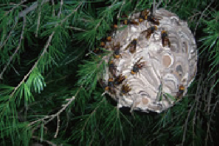スズメバチは6月位から営巣活動が始まり、11月位まで働きバチを増やし続け活動いたします。秋頃には巣の大きさも最大となり、その頃には翌年の新女王バチが誕生し、働きバチはその新女王バチを守るため、より凶暴になります。中でも黄色スズメバチは体長は小さいですが怒らせると大変凶暴です。我々プロでも駆除最中は防護服は着ているものの襲われると脅威を感じることがあるほどです。素人の駆除は大変危険が伴いますので、巣を見つけたら是非ご依頼ください。