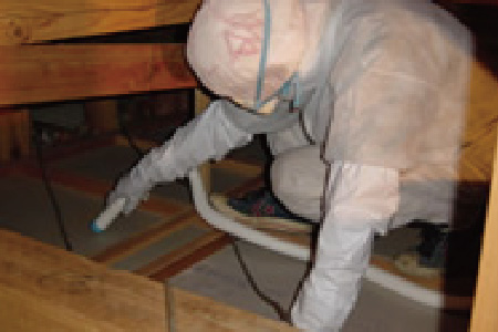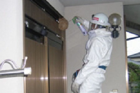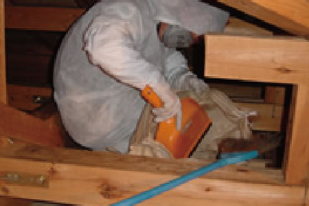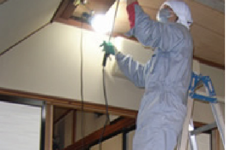 ③追い出し作業の実施(必要に応じて屋根裏清掃、消毒、断熱材の交換を行います)