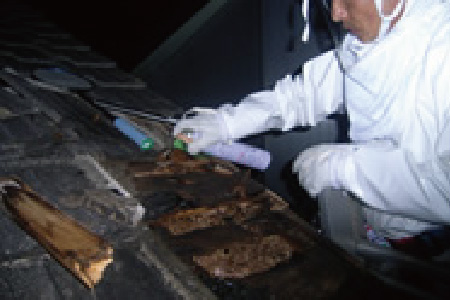 ①現地事前調査(屋根裏の状況確認、進入口の特定)